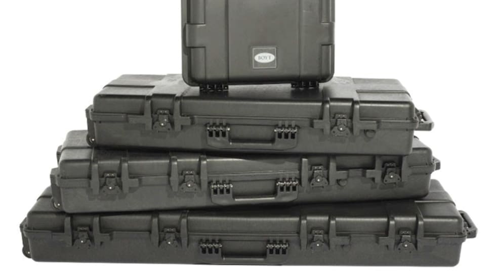 Boyt H-Series hard sided cases are made of high-impact resin and have 1020 steel powder coated draw latches.