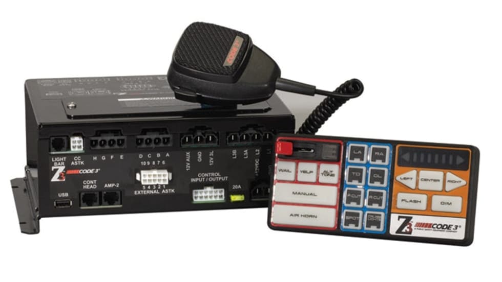 The Code 3 Z3 Siren's programmable features include siren lock, light alert, multiple tone choices, positive or ground switching, park kill, and horn ring. The Z3 Siren is designed and manufactured in the USA.