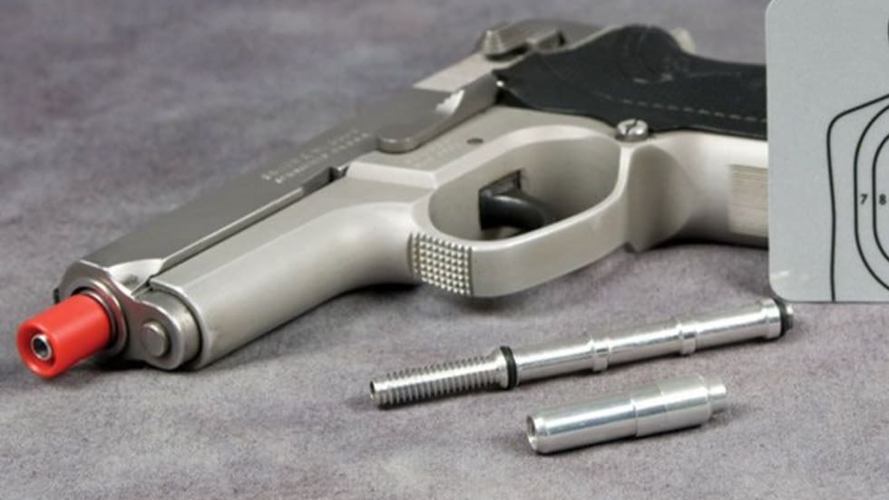 Laser Ammo's new SureStrike laser system transforms any fully operational pistol into a laser-emitting dry-fire training weapon. The system comes with a 9mm laser cartridge, the UhrSecure safety system, a user guide, battery pack, and five reflective targets.