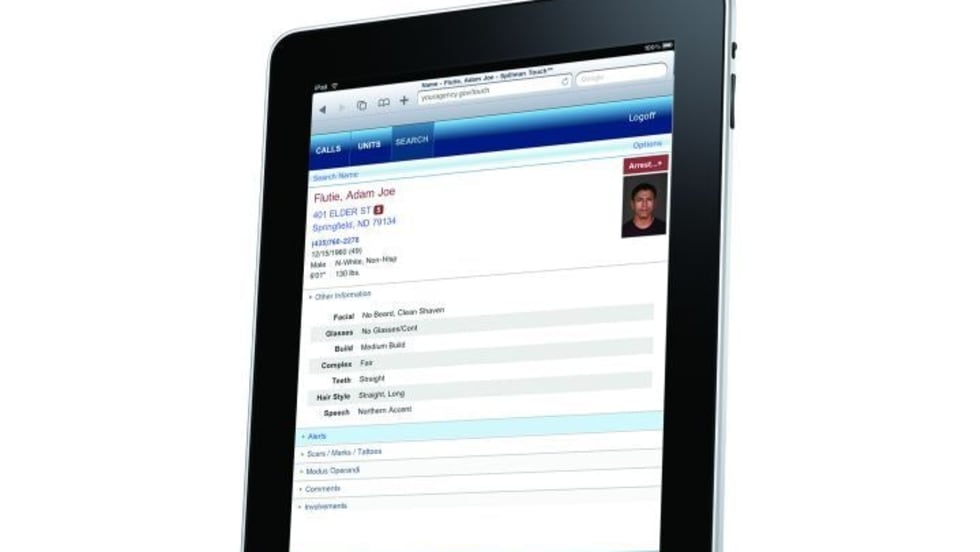 The Spillman Touch application from Spillman Technologies lets officers access records, search databases, view dispatch information, and receive assignments using mobile devices. Spillman Touch can be fully integrated with your agency's Spillman database. Users can see dispatched calls as they are received and update their status.