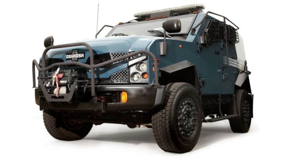 The Tactical Protector Vehicle (TPV) from Oshkosh Defense is an armored SWAT operations vehicle designed specifically for the narrow streets of American cities and suburbs. Built on a Ford F550 chassis with a 325-horsepower turbocharged V-8 engine, the TPV can carry four to eight fully equipped operators.