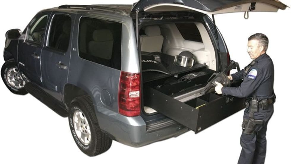 Tuffy Security Products' Tactical Gear Security Drawers secure gear in vehicles. These highly functional, highly secure, and fully customizable drawer units are precision crafted in the USA from 16-gauge steel.