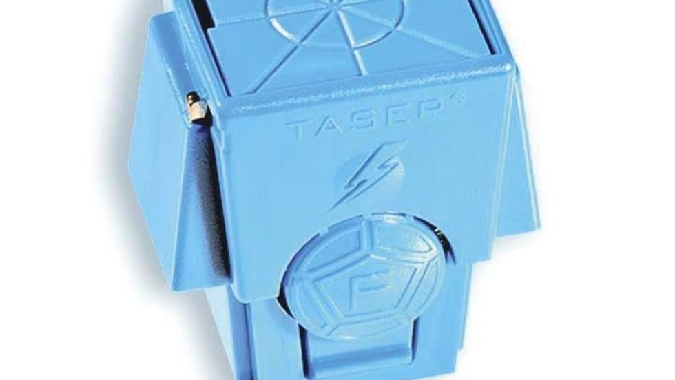 TASER's Simulation Air Cartridges are self-contained devices that have 21 feet of range but fire non-conductive nylon wire leads and shortened barbs.