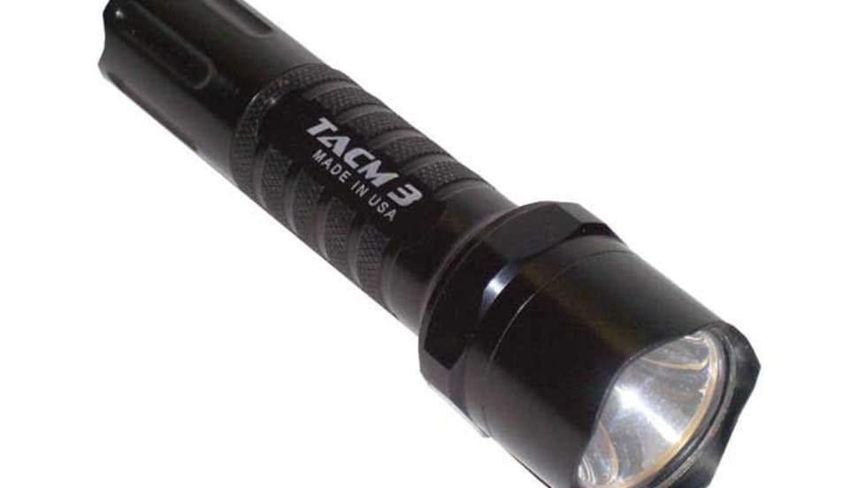 The Hellrazer flashlight from TACM 3, manufactured and assembled in America by Americans, also serves as a formidable impact weapon. An aggressively serrated front lens assembly and a guard around the recessed push button end cap switch are both capable of delivering lethal force injuries in an unexpected deadly force situation.