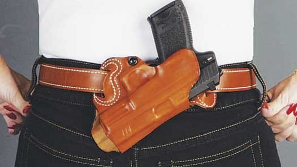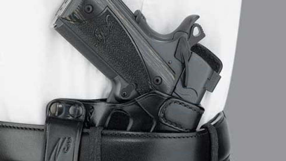 DeSantis concealed carry holsters give you a variety of choices to carry on your ankle, on your belt, or behind your back. The DeSantis S.O.B. (Small of Back) holster secures your handgun in one of the most discreet carry positions. Features include unlined leather construction, 1.75-inch belt slots, and a tension device for a secure fit.