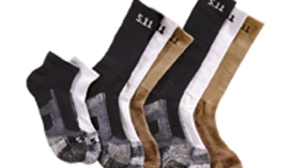 In addition to 5.11 Tactical’s original black and white 6-inch and 9-inch socks (in traditional Level I and the extra-cushioning Level II thicknesses), they are now offered in coyote.