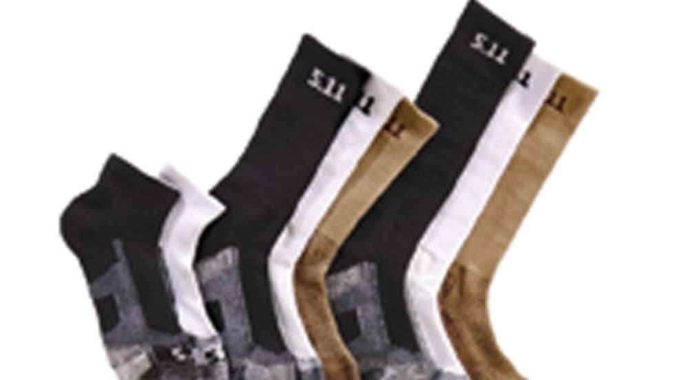 In addition to 5.11 Tactical’s original black and white 6-inch and 9-inch socks (in traditional Level I and the extra-cushioning Level II thicknesses), they are now offered in coyote.