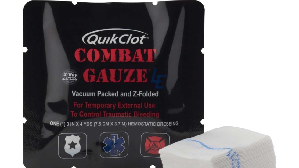 QuikClot Combat Gauze LE is a medical device that provides fast-acting, easy-to-use hemostatic dressing that stops bleeding wherever it occurs.