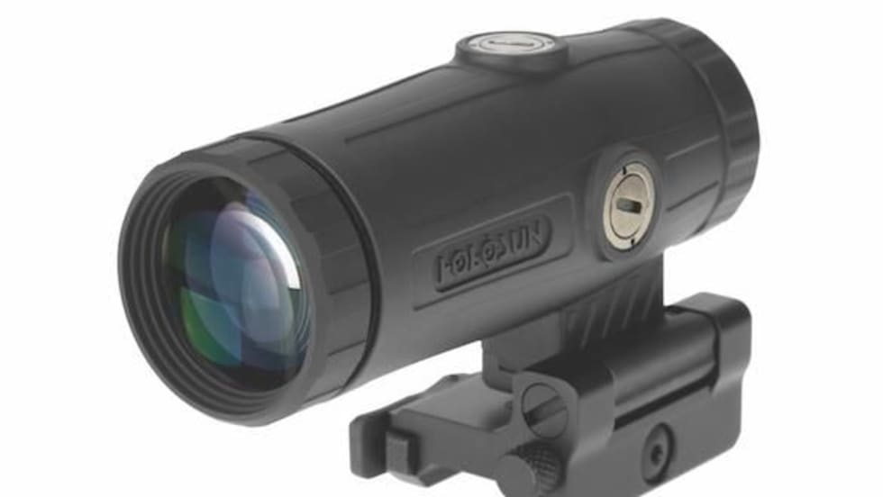New for 2019, Holosun has introduced its 3 power flip-to-the-side magnifier, the Holosun HM3X. It’s designed to allow the operator to seamlessly transition from unmagnified to 3X magnification.
