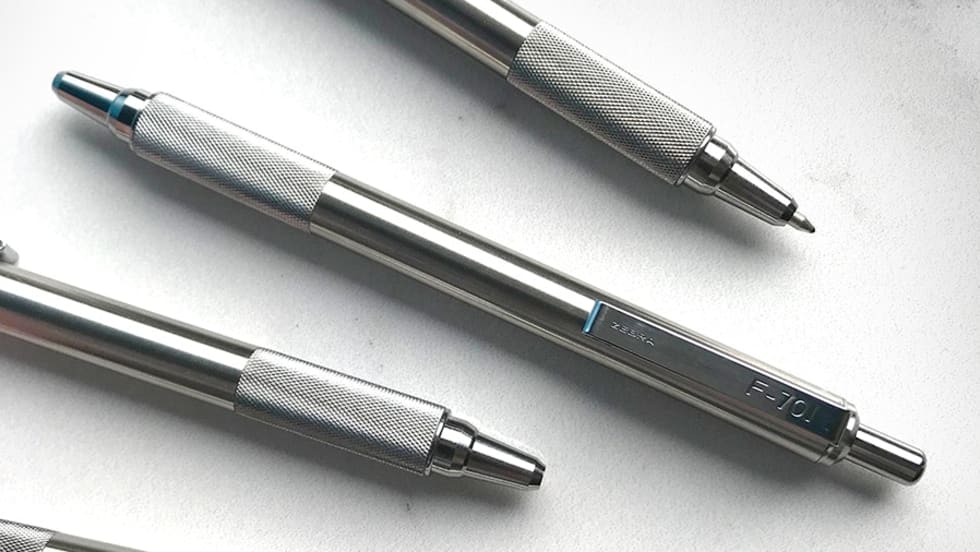Zebra's Steel F-701 pen is now all metal from tip to clip, featuring a metal ring and refill.