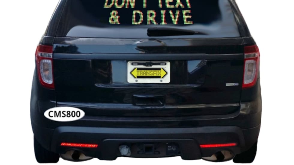 POLIFORCE has made an on-board version of its Transfix changeable message sign called Transfix. The rear window of a patrol vehicle is turned into a see-through screen to display regulatory and advisory preprogrammed or operator-written messages.