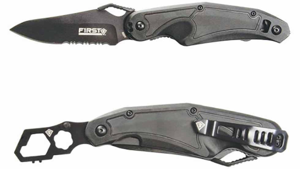 The First Tactical Sidewinder Range Knife features both a blade and several other practical tools.