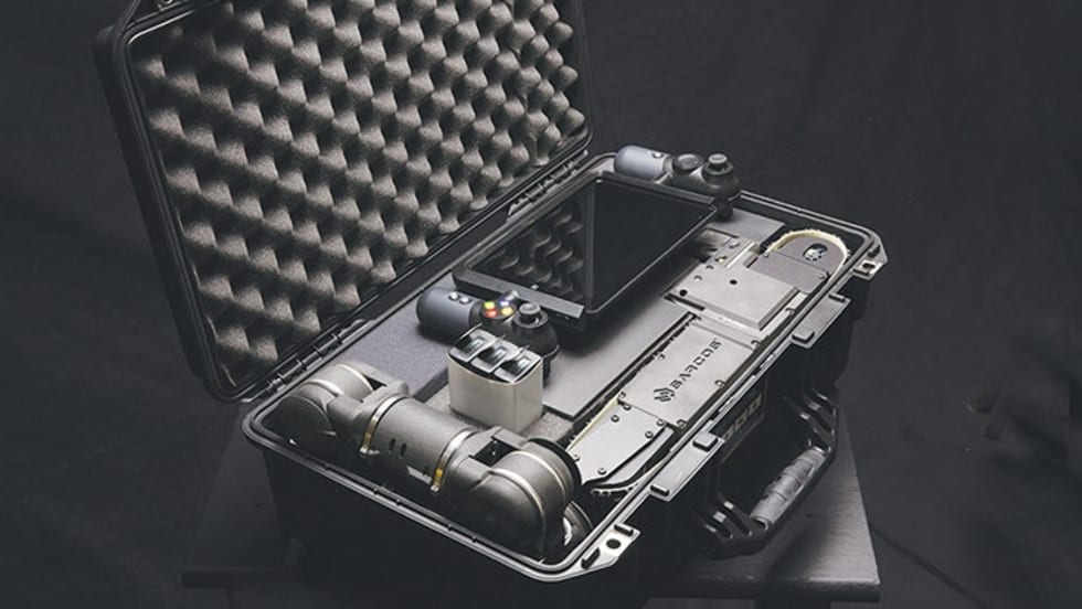 Sarcos Robotics' Guardian S is a multi-purpose, man-portable, wirelessly-controlled, unmanned ground vehicle that acts as a robotic mobile Internet of Things (IoT) platform to carry multiple sensor payloads.