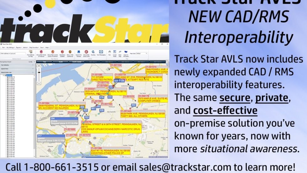 Track Star has enhanced the Track Star AVLS system by expanding its ability to receive and display CAD/RMS data in the AVL system along with vehicle and asset locations.