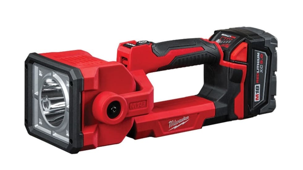 The M18 LED Search Light from Milwaukee Tool is designed to allow users to spot farther and flood brighter. This versatile light survives wet conditions and has spot and flood mode.