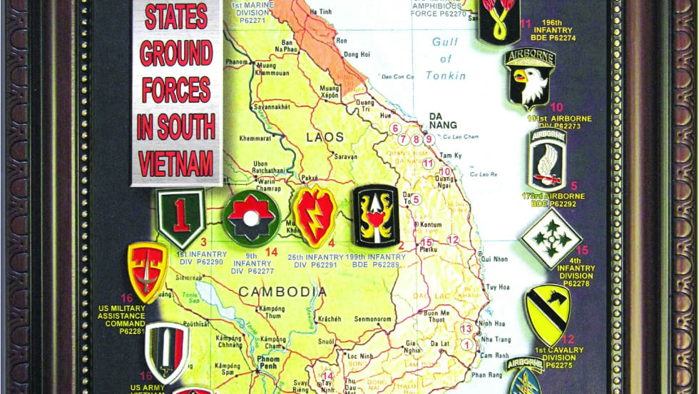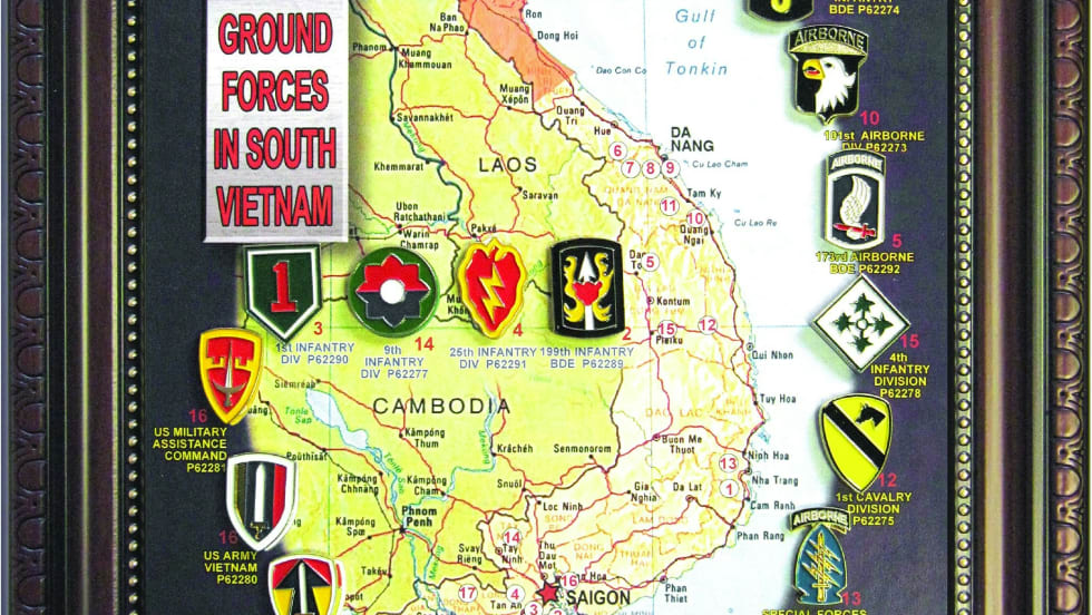 Maxsell's United States Ground Forces in South Vietnam Pin Collection features mini replica badges from 24 ground forces in South Vietnam.