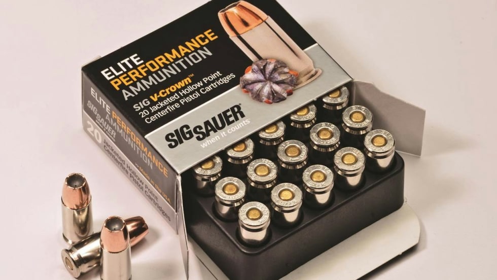 SIG Sauer V-Crown ammunition features a proprietary stacked hollow point bullet for consistent, controlled expansion and optimal terminal performance.