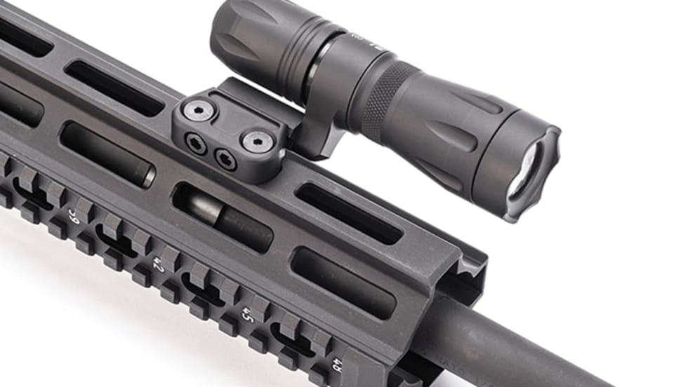 Elzetta Mini-CQB Modular Weaponlights provide 375 lumens of white light from a single CR123A battery. A soft-edge beam is produced by the optical lens (no reflector), which is optimized for missions within 50 meters.
