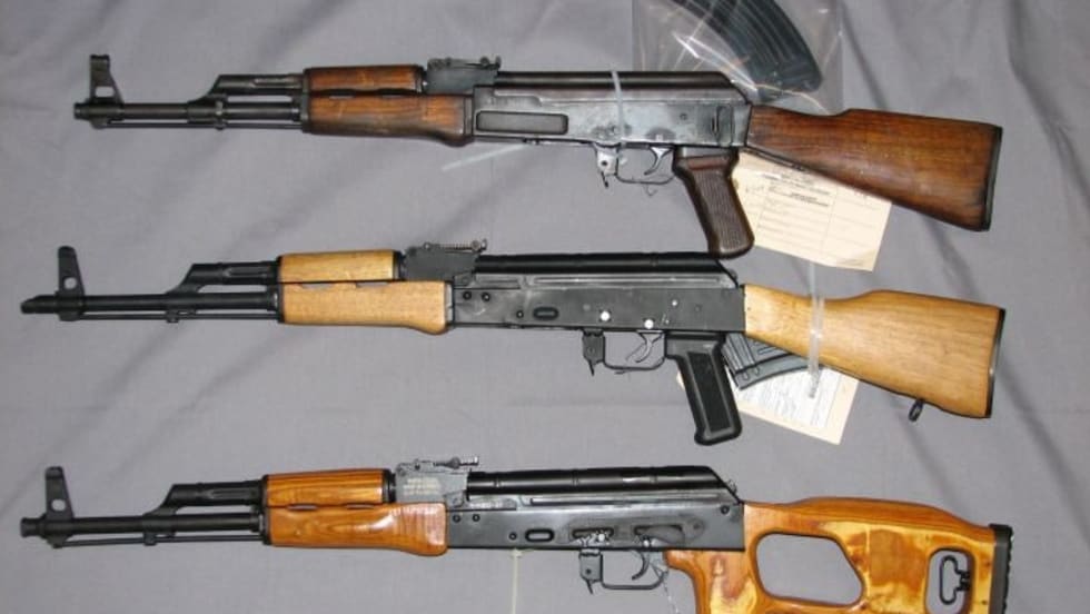 Several of the guns, which were being moved from Arizona to California, were fully automatic. One of the men arrested said the transaction was raising funds to pay off a debt to a Mexican drug cartel, according to the ATF.