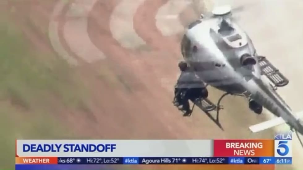 Los Angeles police fired a rifle from a helicopter during a shootout with a man killed in Sunland earlier this week, marking the first time that specially trained SWAT officers have opened fire from a helicopter hovering over a scene, the LAPD said.