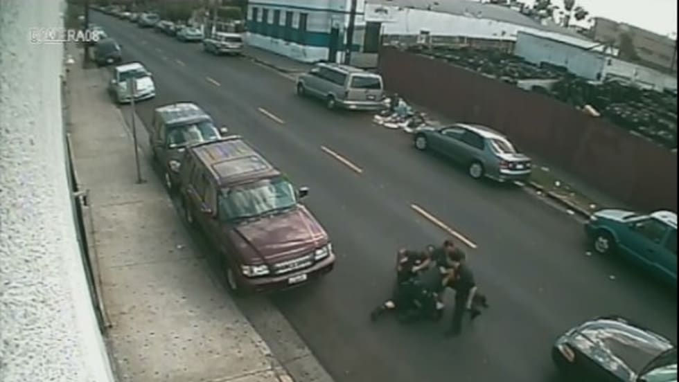 A Los Angeles police officer convicted of assault for kicking and punching a man during a South Los Angeles arrest caught on video was spared jail time at his sentencing on Tuesday after fulfilling his end of an agreement made with prosecutors.