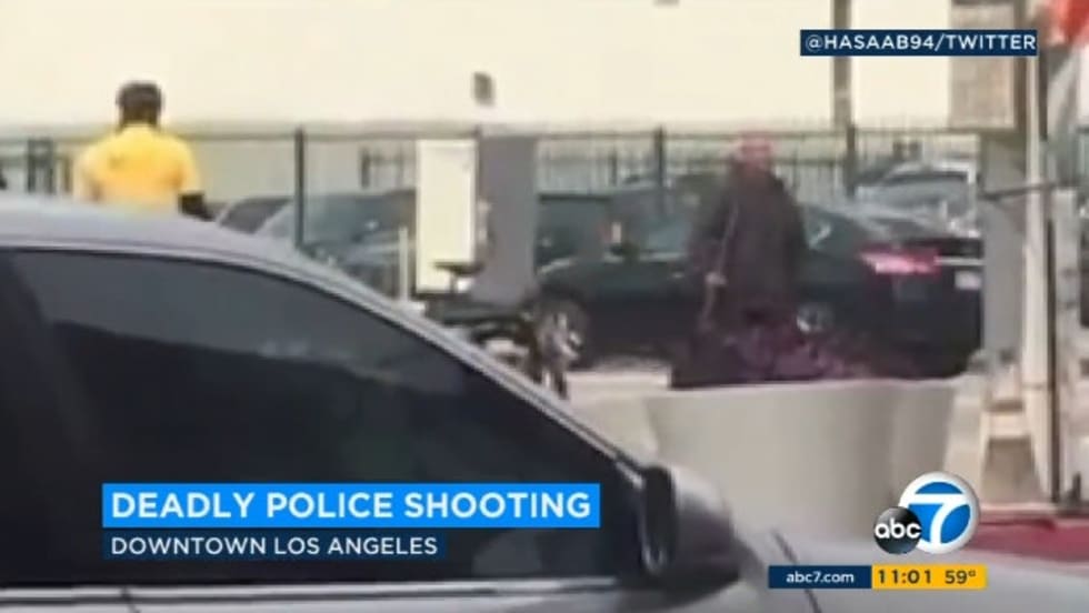 Los Angeles police shot and killed a man armed with a large metal pipe Saturday about 12:30 p.m. in downtown, authorities said.