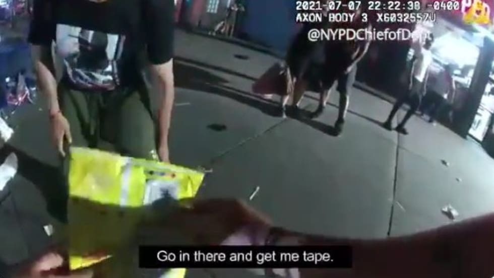 Body camera video released by the New York Police Department showed Officer Ronald Kennedy placing the bag over the man's wound described by emergency personnel as a "sucking chest wound."