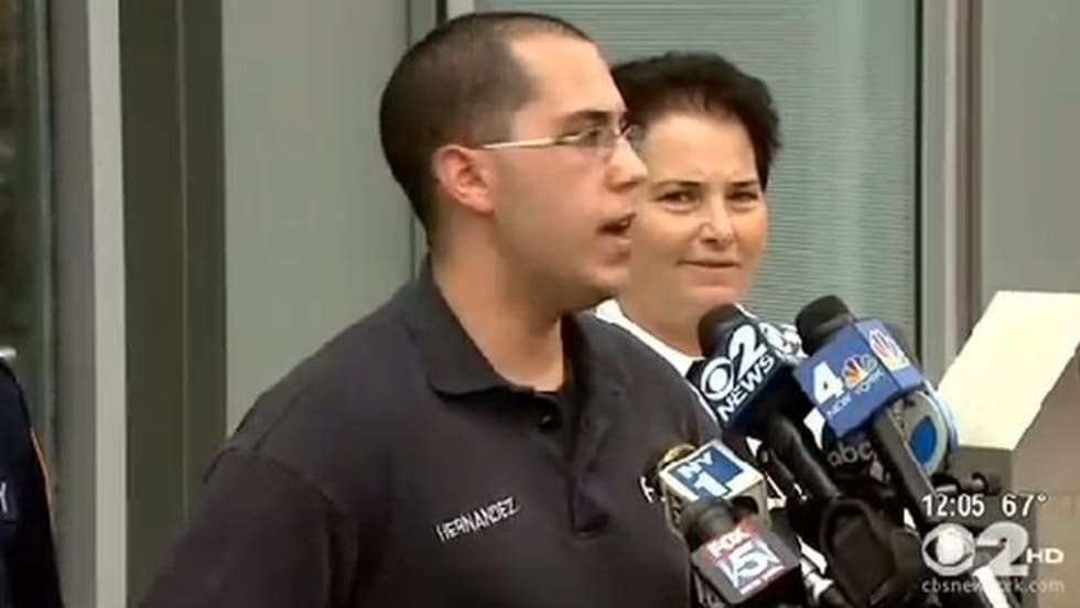 A New York City EMT is being hailed as a hero for wrestling a gun away from a crazed man who had grabbed it from an NYPD officer and shot the officer's partner in front of a Harlem hospital.