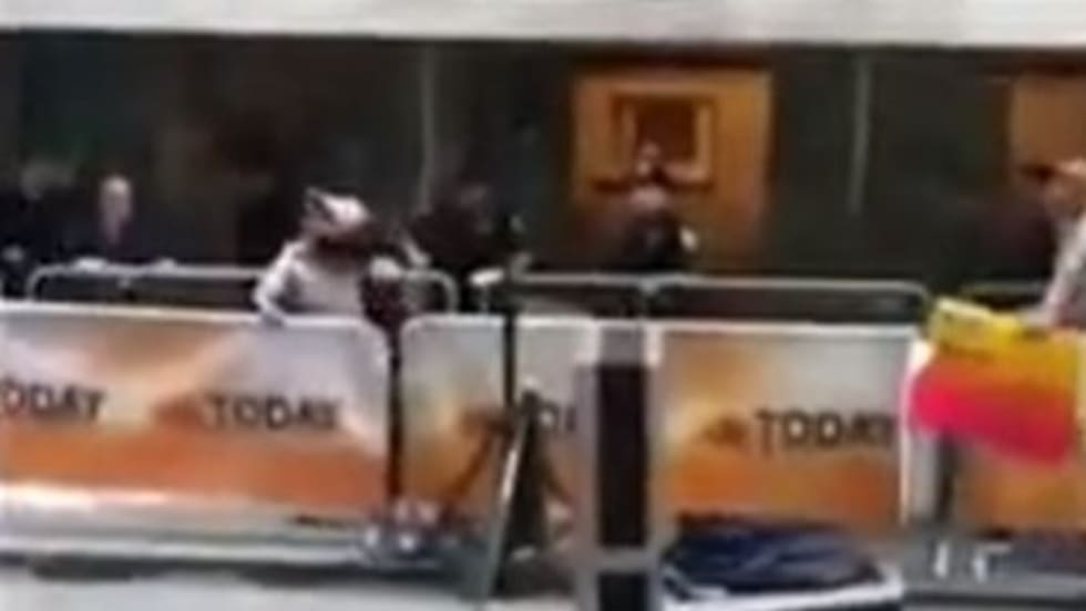 New York Police Department officers tackled a suicidal man on Thursday, after he ranted about the IRS and began slashing his wrists with a knife in a throng of tourists at Rockerfeller Center.