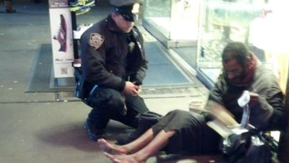 A New York City police officer who gave a homeless man shoes on a frosty November night was surprised by the attention he got when a tourist's photo went viral.