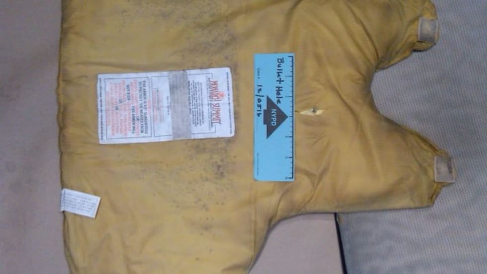 A New York Police Department officer survived a point-blank gunshot to chest that was stopped by his ballistic vest during a foot pursuit early Thursday. Officer Brian Groves was shot at about 3:30 a.m. while chasing a suspect down the stairwell inside the Seward Park Housing Facility projects in Manhattan.