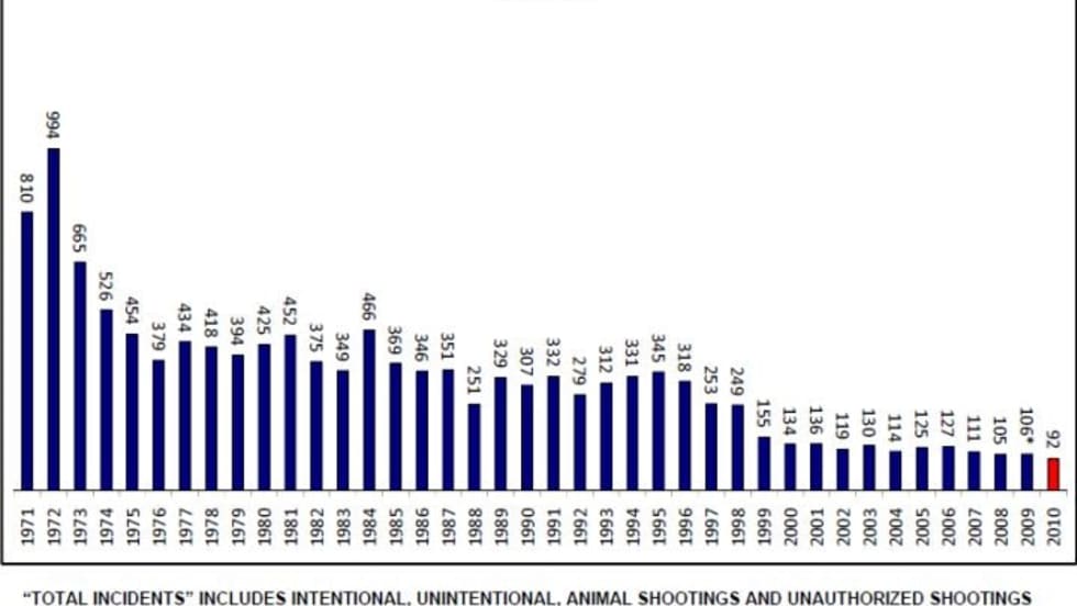 While the number of officer-involved shootings fell to a record low in 2010, New York City police officers fired nearly a quarter more bullets than a year earlier, according to the Firearms Discharge Report.
