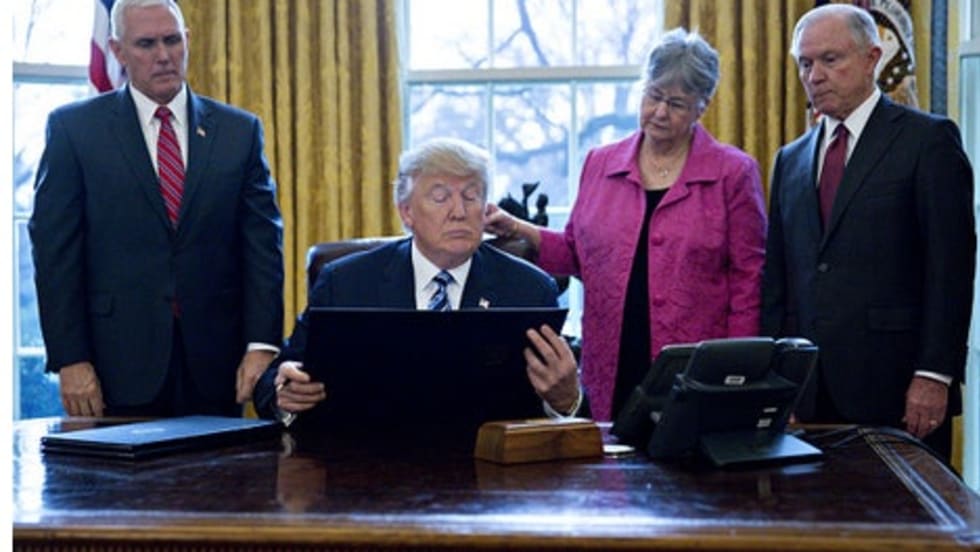 President Donald Trump signed a trio of executive actions on Wednesday directing the Department of Justice to intensify its effort to fight drug-related crime and violence against police officers.