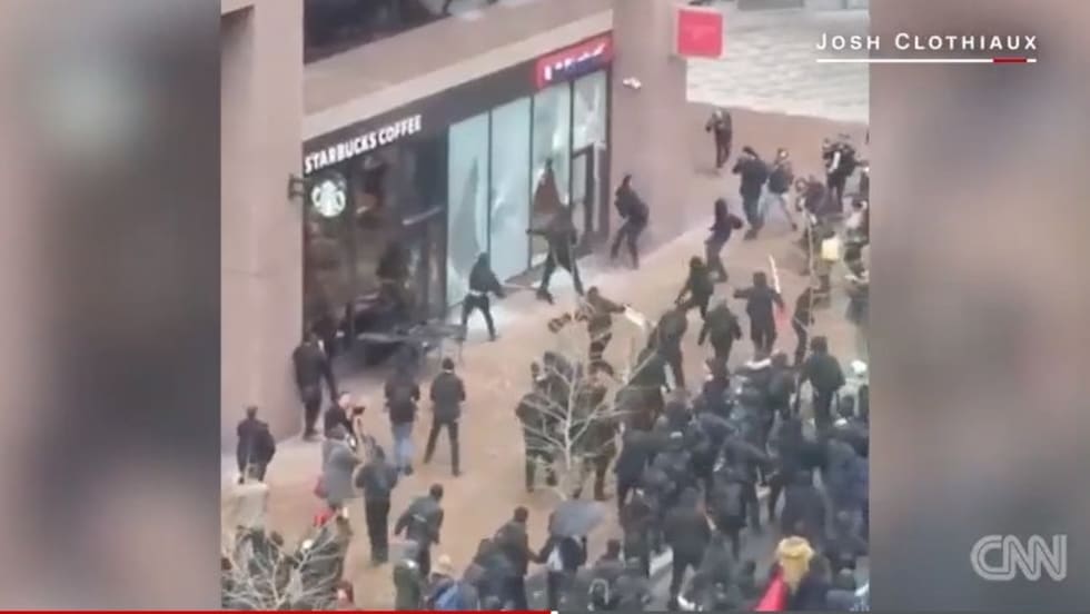 A pair of police officers were injured and 95 protesters arrested after they smashed windows, damaged cars and threw rocks at police near Donald Trump's inauguration ceremony on Friday in Washington, D.C.