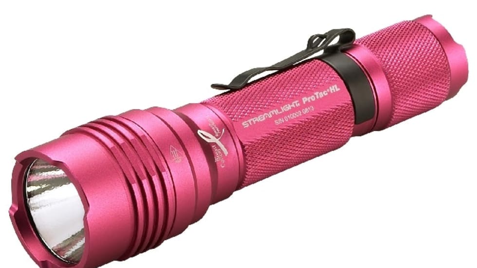 The ProTac HL flashlight combines high lumen output and small size for a bright, personal carry light. Proceeds from each sale of the pink version will be donated to the Breast Cancer Research Foundation.