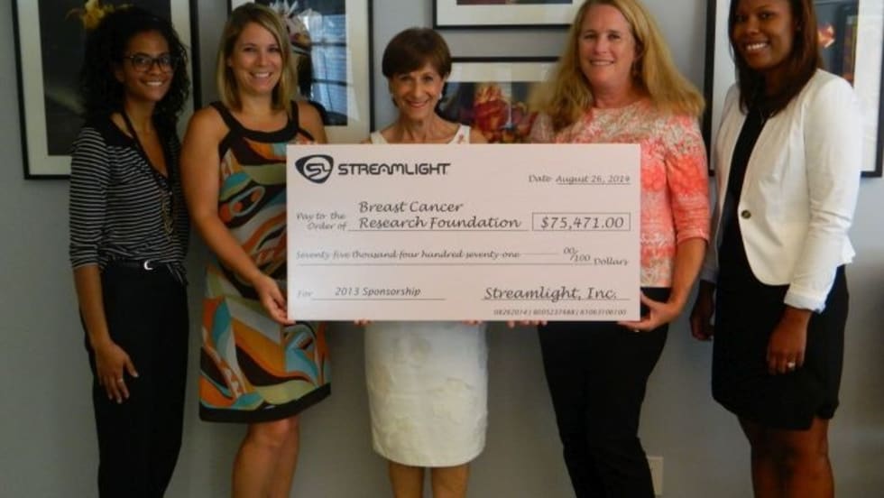 Streamlight Inc., manufacturer of high-performance lighting equipment, recently contributed more than $75,000 to The Breast Cancer Research Foundation (BCRF), a not-for-profit organization with a mission to achieve prevention of and a cure for breast cancer.