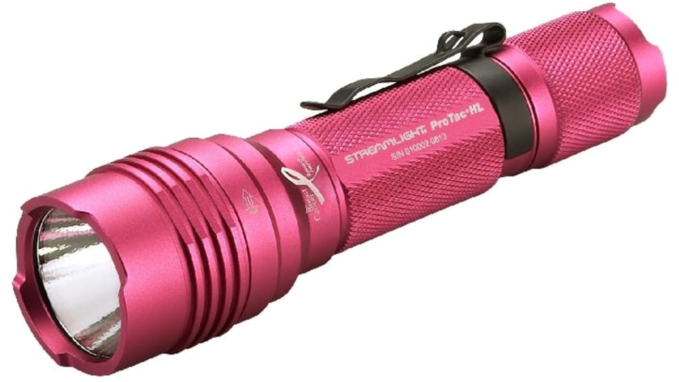 The ProTac HL flashlight combines high lumen output and small size for a bright, personal carry light. Proceeds from each sale of the pink version will be donated to the Breast Cancer Research Foundation.