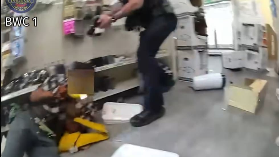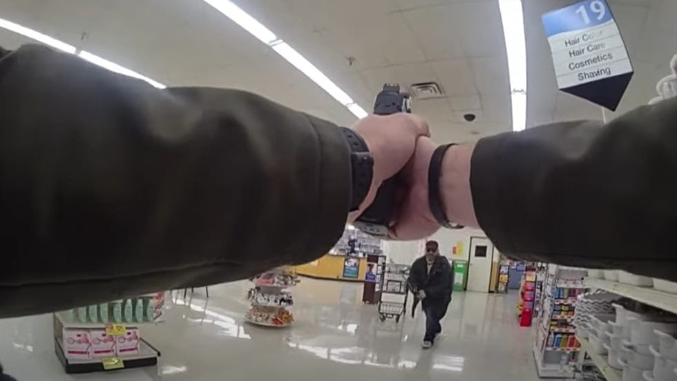 The suspect ignored the order...and fired up the chainsaw. The officer deployed his TASER, knocking down the suspect. But before he could be taken into custody, he got back up, grabbed the running chainsaw, and ran toward the officer.