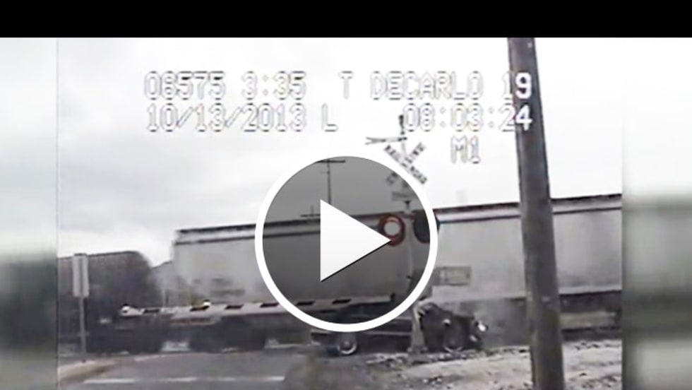 A woman fleeing officers in Woods Cross, Utah, drove her car into one train and was struck by another Sunday. Miraculously, she suffered only minor injuries and a broken arm.