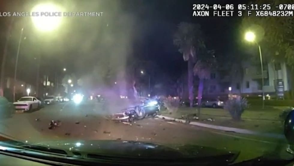 The Lamborghini crashed into the center median. As officers approached, they found debris scattered all over the street, and the core of the Lamborghini shredded to pieces.