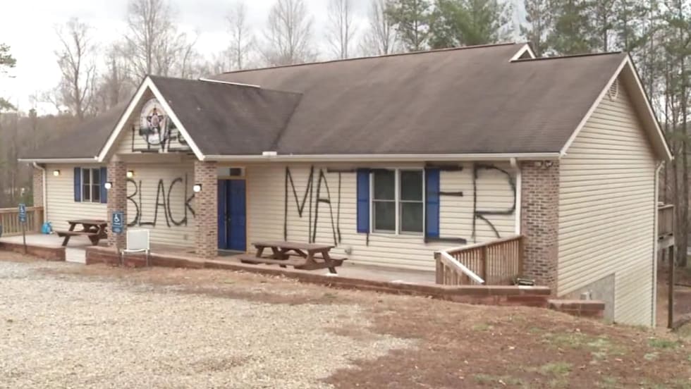 A police spokesperson also says the windows of an FOP van in the parking lot were broken out, and someone cut the wires to surveillance cameras.