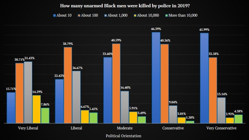 Only 18% of respondents supported the movement known as "defund the police," and 58% said they opposed it. Though white Americans (67%) and Republicans (84%) were much more likely to oppose the movement, only 28% of black Americans and 34% of Democrats were in favor of it.