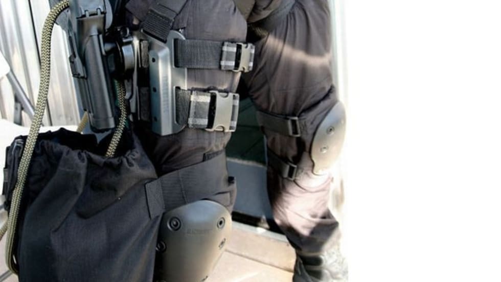 The Tactical Rappel Rope Bag allows the operator to attach with quick disconnect leg straps. An outside pocket for carabiners is easy to access even while in rappelling mode.