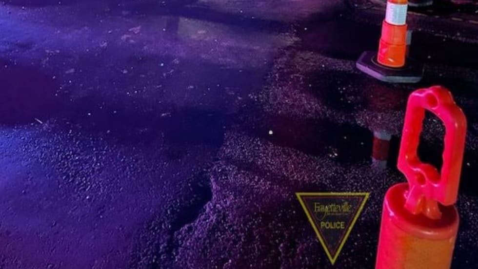 "When officers were attempting to close off the road ... there was a vehicle that was driving too fast for conditions and actually struck the officers' cars as they were out there and pushed the officer into the hole," Chief Kem Braden said.