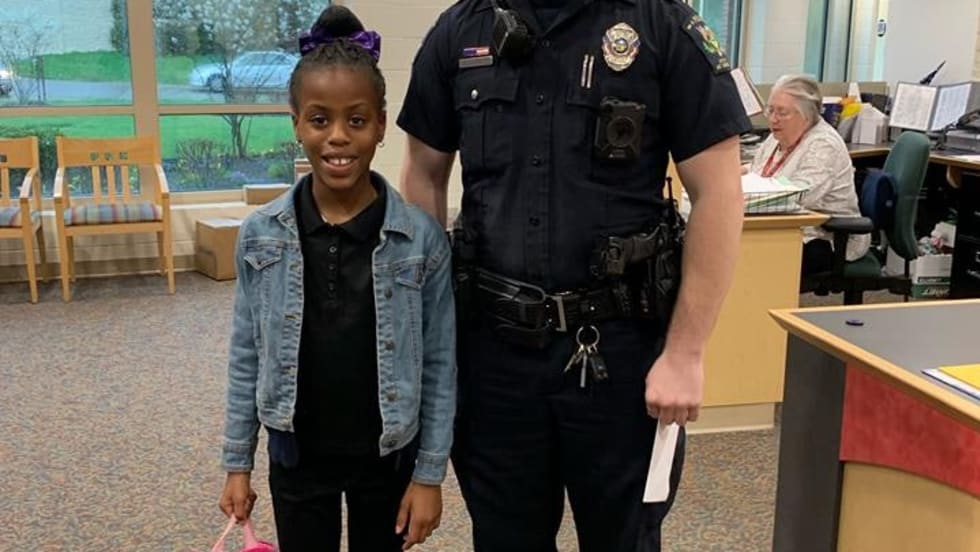 Officer Raymond Seehousen with the Mount Healthy (OH) Police Department escorted a little girl to school for the annual Father/Student day on Friday because the child's dad had recently been deployed for duty with the United States Army.