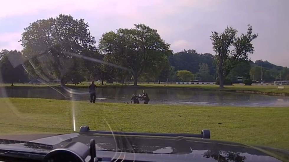 Police were searching the area when a call came in around 8:12 a.m. about a possible body floating in the pond.
