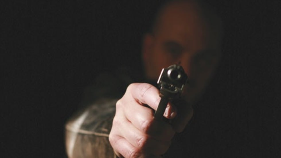 Barton's gun swung toward him, and its barrel spit fire. Flashes of amber split the night as Barton's Ruger blazed at Dunnigan a mere 10 feet away.