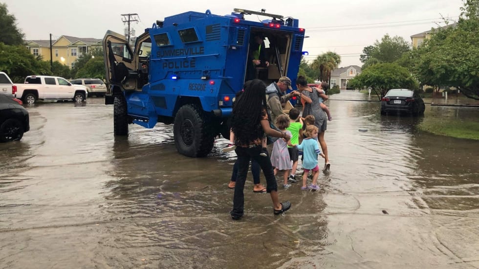 Officers with the Summerville (SC) Police Department saw that there was an imminent danger to kids at a local daycare facility who were attempting to get to their parents through a street flooded with rainwater.