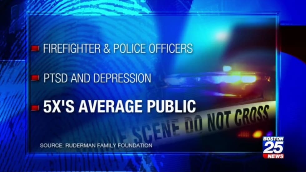 A study by the Newton-based Ruderman Family Foundation found police officers and firefighters experience PTSD and depression at rates five times higher than the average public.