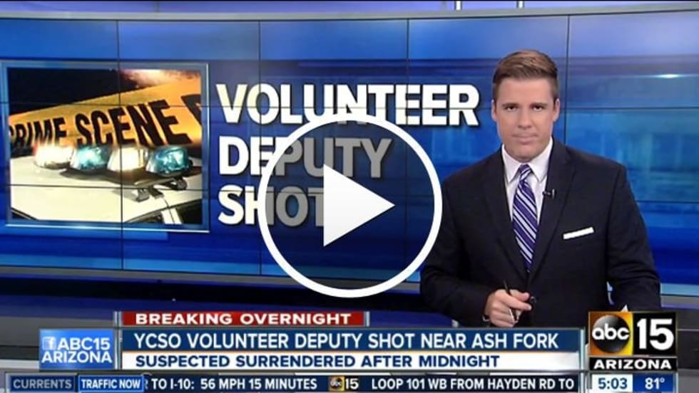 The Yavapai County (Ariz.) Sheriff's Office says one of its volunteers was shot in the hip Thursday night while patrolling in a marked patrol car near Ash Fork. More Here.